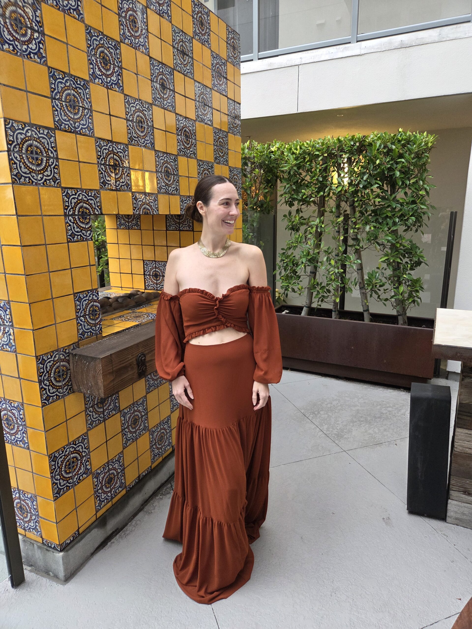 A moment for the dress. An ode to Goodwill for this find. A shout of gratitude to whomever donated this brand-new, rust-colored, dreamy, flowy, swirly, princess-feeling gown. Etched in my feed, as a spark of vibrant shades. It hangs in my closet now, awaiting its …